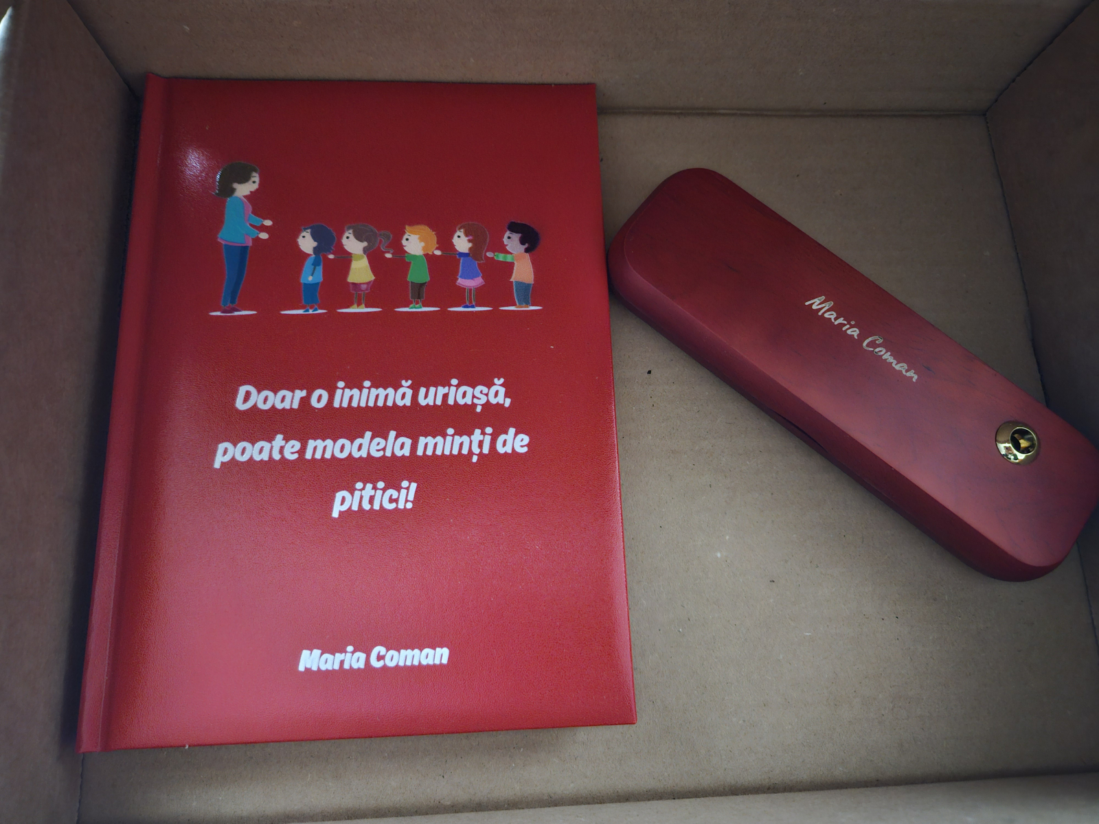 Cadou pentru educatoare- Agenda personalizata + set scris
